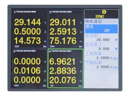 FT66100A的OCP功能,自动寻找过流保护点,停止并记录最大电流值, 保护点的电压值及最大功率值。并且可以设定上下限, 负载自行产生判断。
