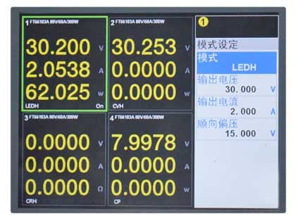 费思对于负载应用于LED驱动测试做了多项改进, 对FT66100的恒压功能进行了修正,使其更接近于LED的工作特性曲线,为了适应各种不同方案的恒流源设计了恒压3种速度可调, 以便于LED驱动测试带载能力范围。附带FT66100的LED功能, 是通过设置LED灯具的工作电压、工作电流和导通电压,来确定负载的导通曲线,从而模拟某一个具体的灯具来对LED驱动进行验证。