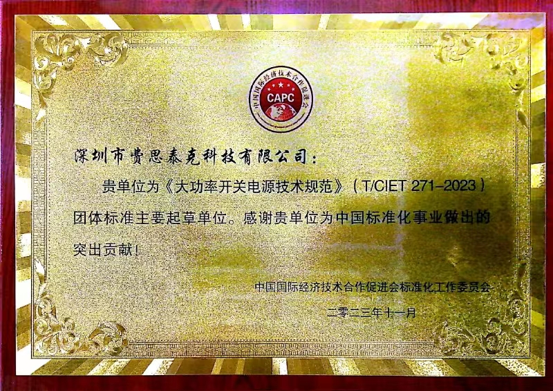 费思泰克荣获大功率开关电源技术规范荣誉