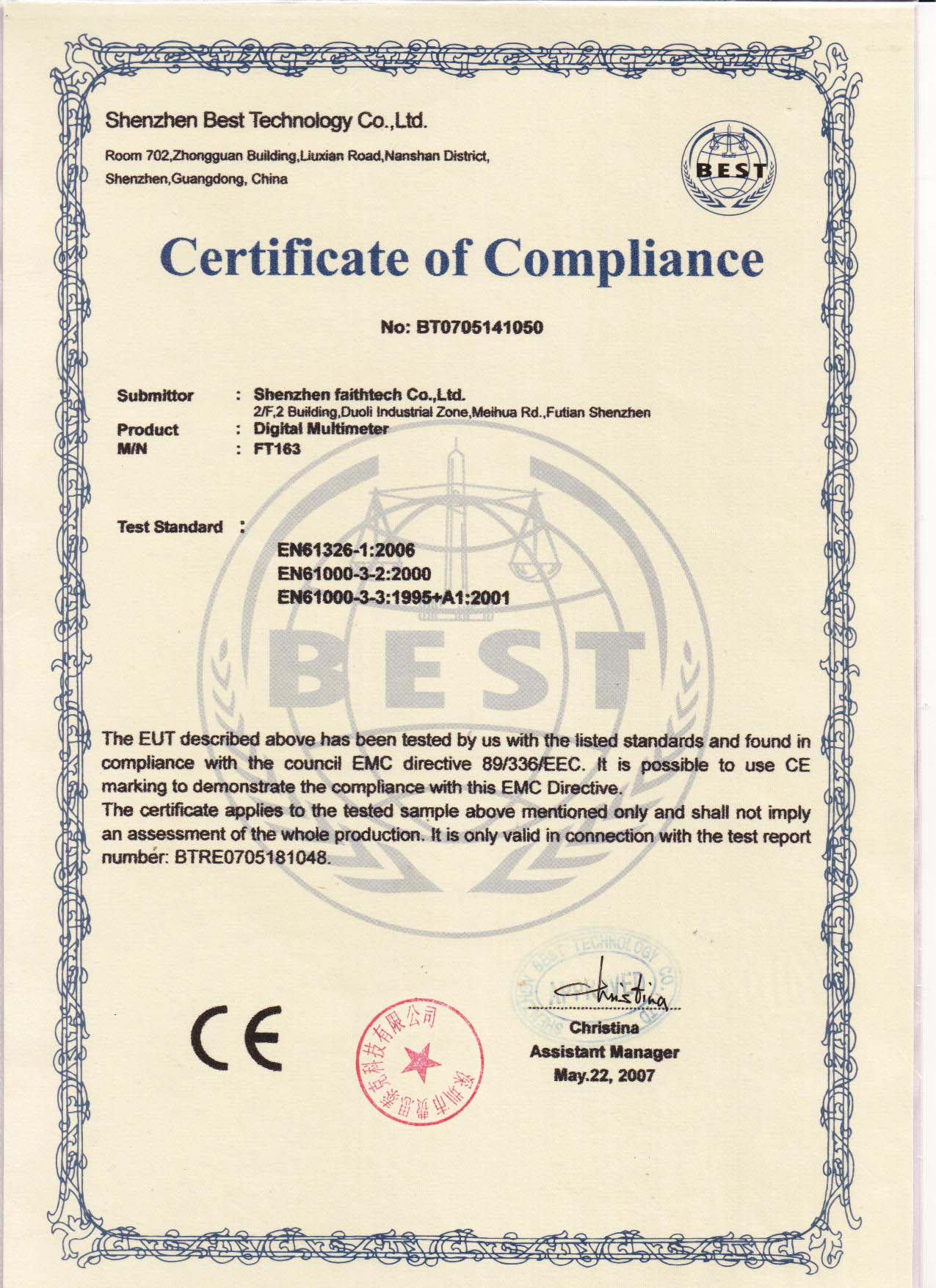 费思泰克通过CE认证