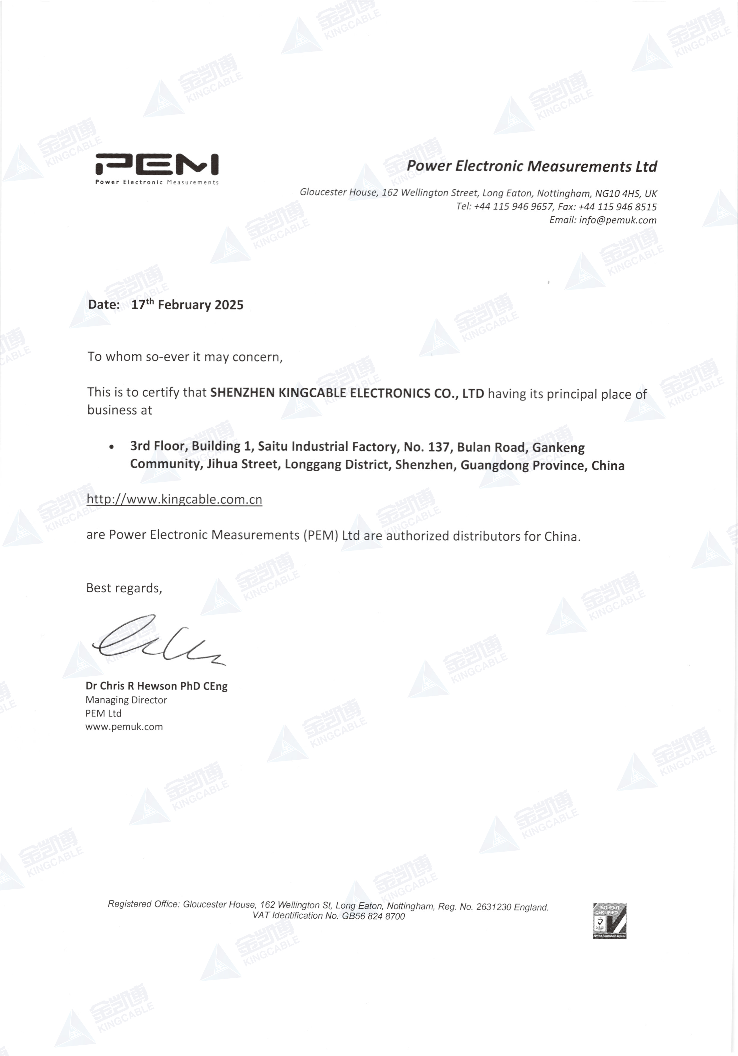 英国PEM授权代理证书